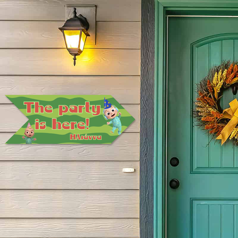 Υπέροχη ξύλινη πινακίδα Cocomelon, προσαρμοσμένη με το όνομα του παιδιού, διαστάσεων 40cm x 15cm.