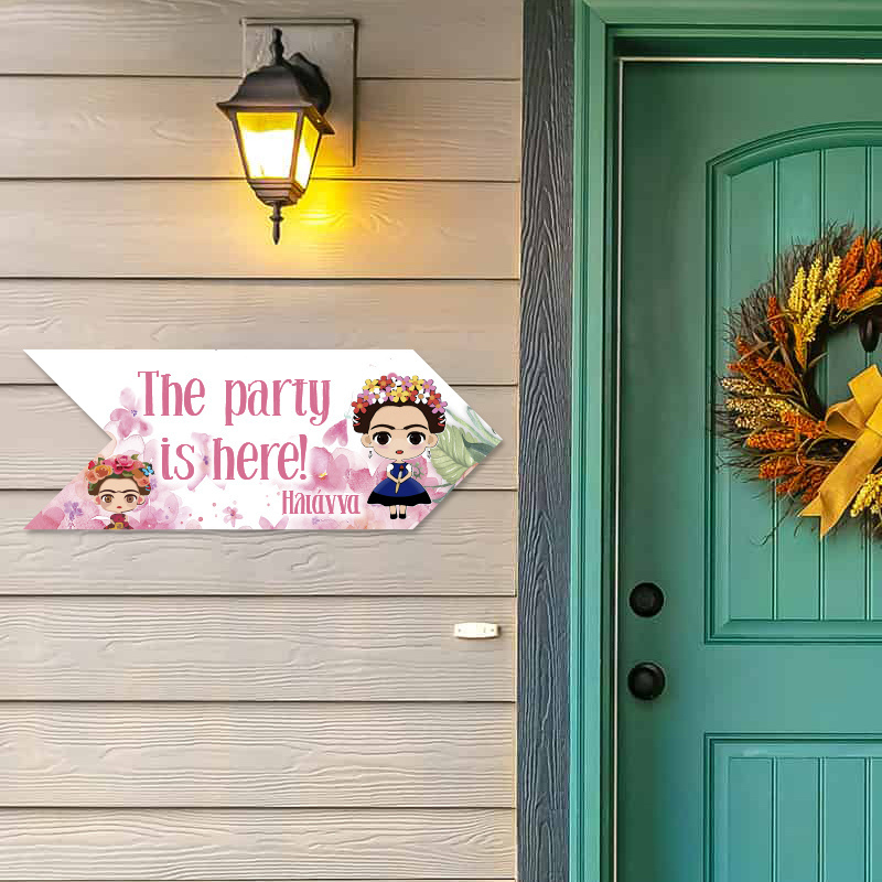 Υπέροχη ξύλινη πινακίδα Frida Kahlo, προσαρμοσμένη με το όνομα του παιδιού, διαστάσεων 40cm x 15cm.