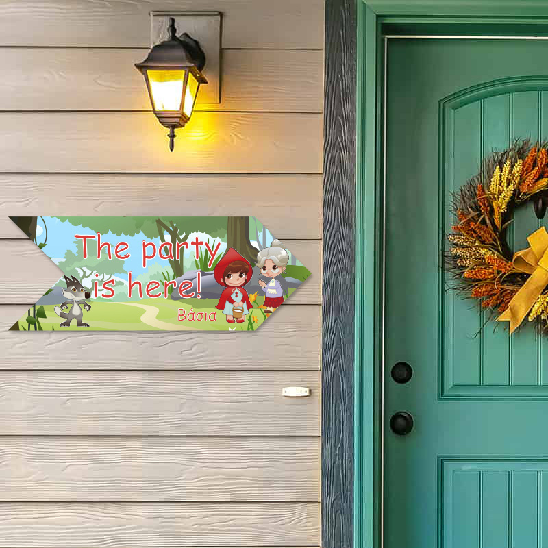 Υπέροχη ξύλινη πινακίδα Κοκκινοσκουφίτσα, προσαρμοσμένη με το όνομα του παιδιού, διαστάσεων 40cm x 15cm.