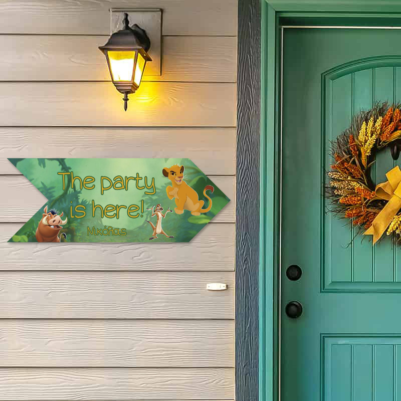 Υπέροχη ξύλινη πινακίδα Lion King, προσαρμοσμένη με το όνομα του παιδιού, διαστάσεων 40cm x 15cm.