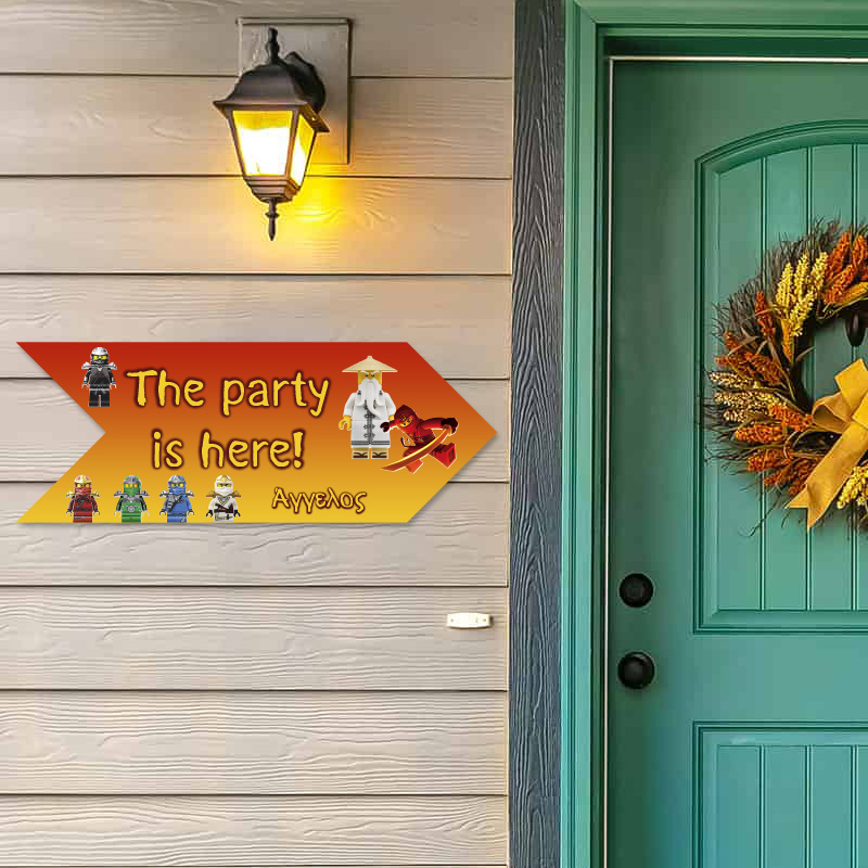 Υπέροχη ξύλινη πινακίδα Ninjago, προσαρμοσμένη με το όνομα του παιδιού, διαστάσεων 40cm x 15cm.