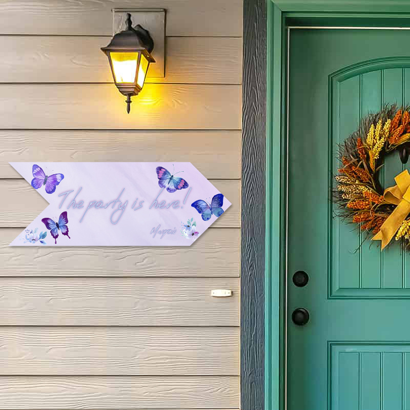 Υπέροχη ξύλινη πινακίδα Πεταλούδες, προσαρμοσμένη με το όνομα του παιδιού, διαστάσεων 40cm x 15cm.