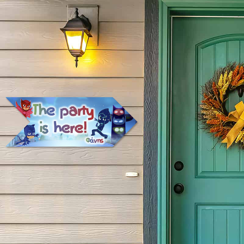Υπέροχη ξύλινη πινακίδα PJ Masks, προσαρμοσμένη με το όνομα του παιδιού, διαστάσεων 40cm x 15cm.