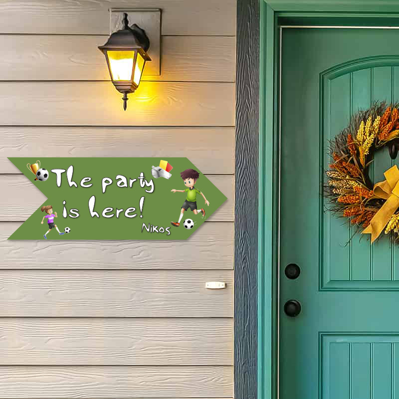 Υπέροχη ξύλινη πινακίδα Ποδόσφαιρο, προσαρμοσμένη με το όνομα του παιδιού, διαστάσεων 40cm x 15cm.