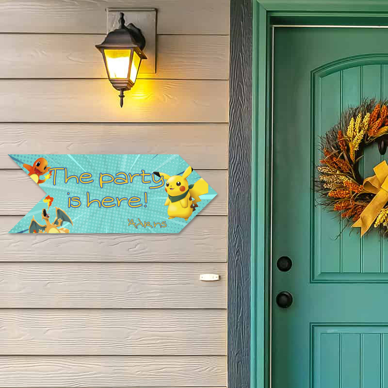 Υπέροχη ξύλινη πινακίδα Pokemon, προσαρμοσμένη με το όνομα του παιδιού, διαστάσεων 40cm x 15cm.