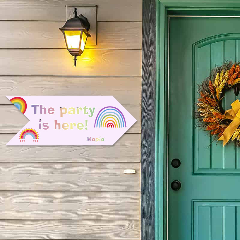 Υπέροχη ξύλινη πινακίδα Retro Rainbow Pink, προσαρμοσμένη με το όνομα του παιδιού, διαστάσεων 40cm x 15cm.