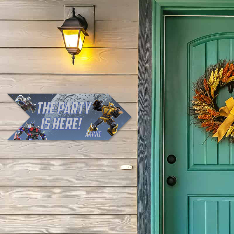 Υπέροχη ξύλινη πινακίδα Transformers, προσαρμοσμένη με το όνομα του παιδιού, διαστάσεων 40cm x 15cm.
