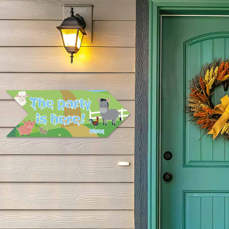 Υπέροχη ξύλινη πινακίδα Ζωάκια Φάρμας, προσαρμοσμένη με το όνομα του παιδιού, διαστάσεων 40cm x 15cm.