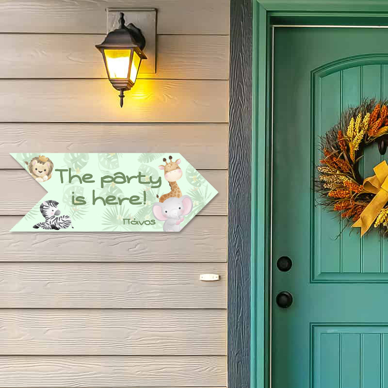 Υπέροχη ξύλινη πινακίδα Ζωάκια ζούγκλας, προσαρμοσμένη με το όνομα του παιδιού, διαστάσεων 40cm x 15cm.