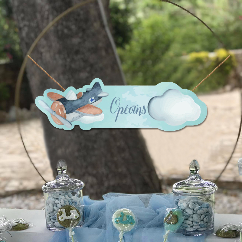 Ξύλινο κοπτικό Αεροπλάνο Vintage, με το όνομά του παιδιού κατάλληλο για την διακόσμηση του μπουφέ, του candy bar ή του τραπεζιού