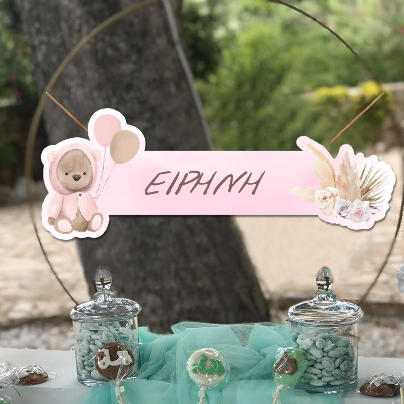 Ξύλινο κοπτικό Αρκουδάκι για Κορίτσι, με το όνομά του παιδιού κατάλληλο για την διακόσμηση του μπουφέ, του candy bar ή του τραπεζιού