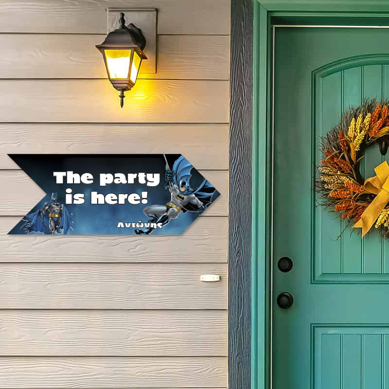 Ξύλινο κοπτικό Batman, με το όνομά του παιδιού κατάλληλο για την διακόσμηση του μπουφέ, του candy bar ή του τραπεζιού