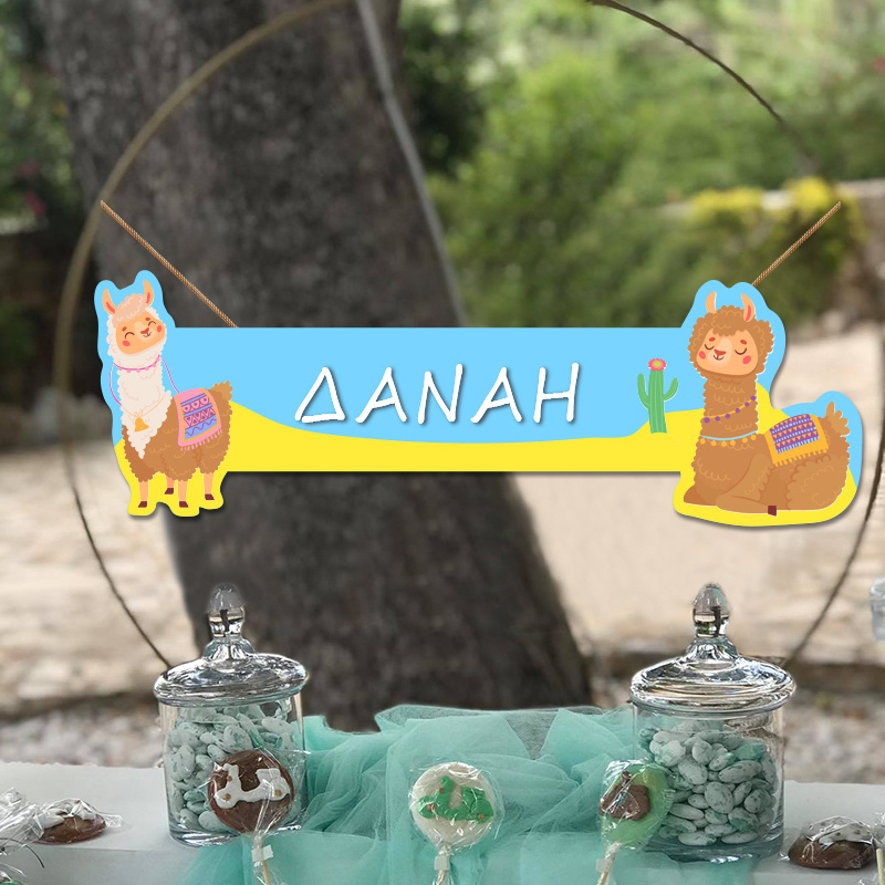 Ξύλινο κοπτικό Λάμα, με το όνομά του παιδιού κατάλληλο για την διακόσμηση του μπουφέ, του candy bar ή του τραπεζιού