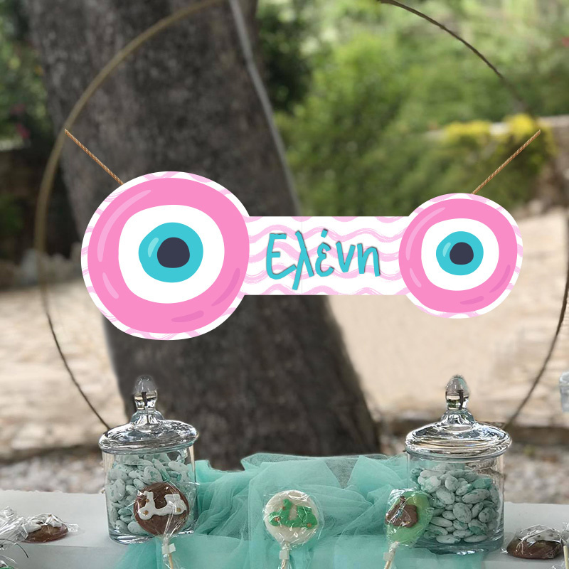 Ξύλινο κοπτικό Μάτι Κορίτσι, με το όνομά του παιδιού κατάλληλο για την διακόσμηση του μπουφέ, του candy bar ή του τραπεζιού