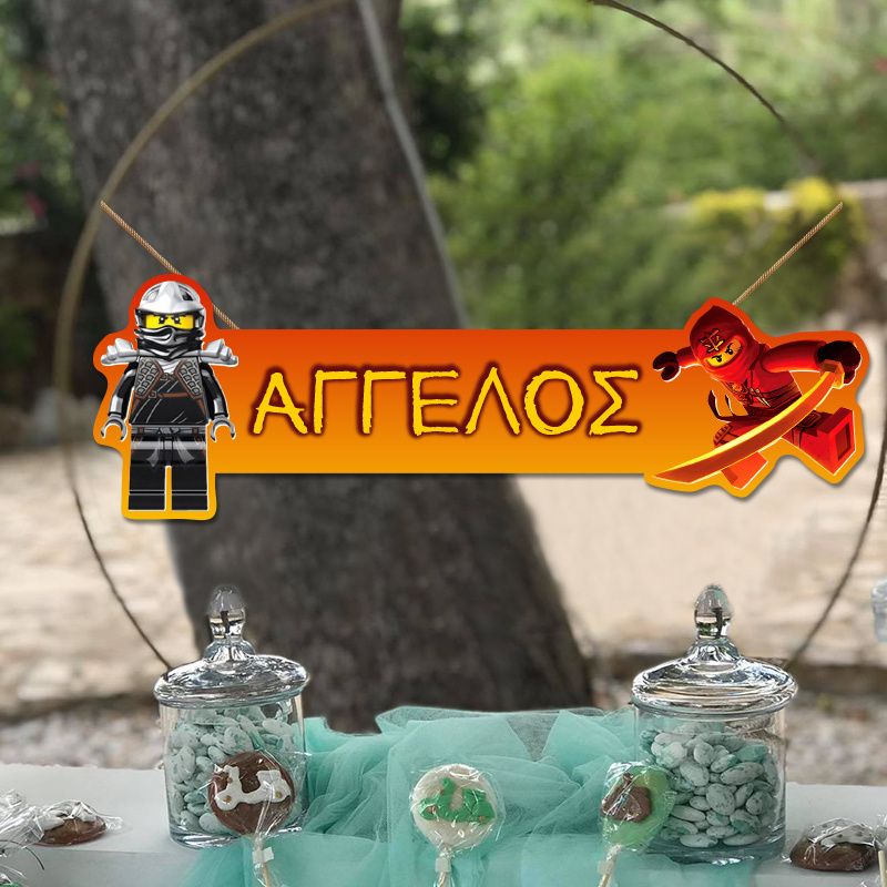 Ξύλινο κοπτικό Ninjago, με το όνομά του παιδιού κατάλληλο για την διακόσμηση του μπουφέ, του candy bar ή του τραπεζιού