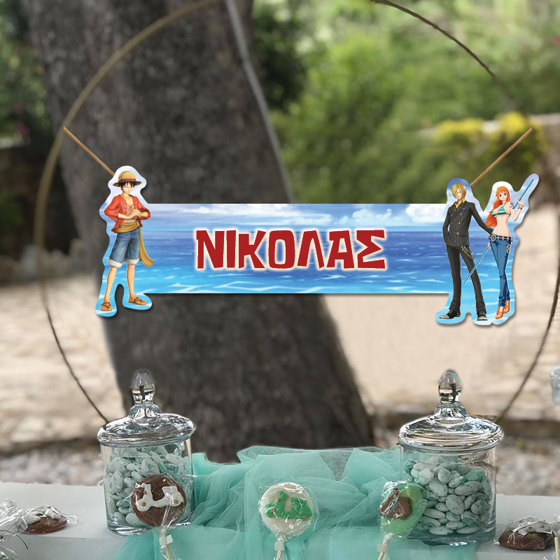 Ξύλινο κοπτικό One Piece, με το όνομά του παιδιού κατάλληλο για την διακόσμηση του μπουφέ, του candy bar ή του τραπεζιού