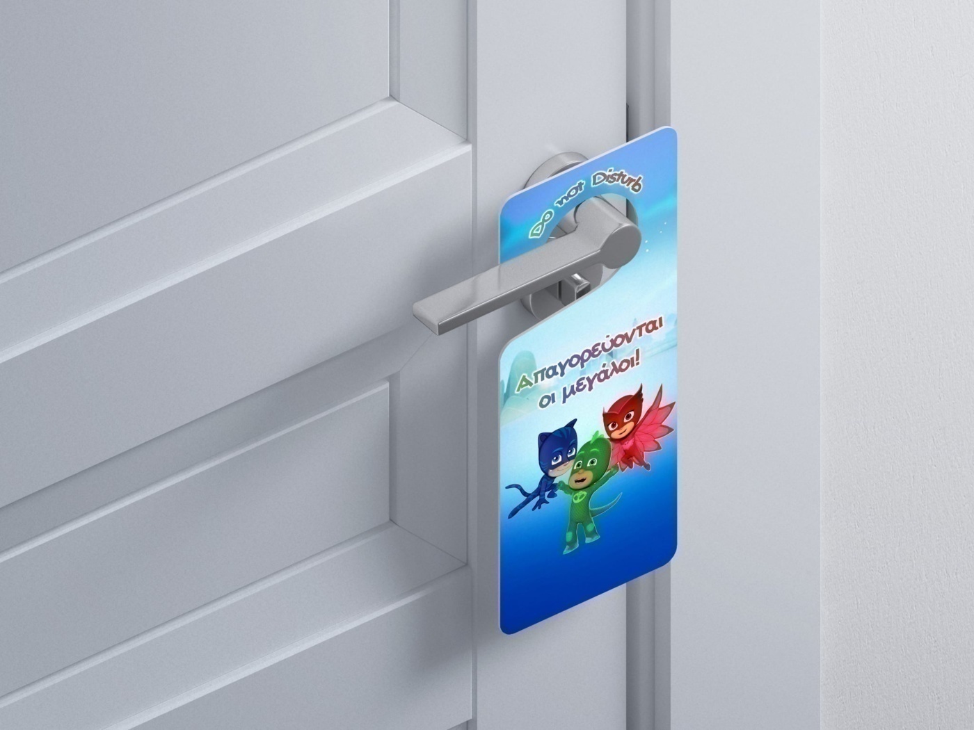 Ξύλινο διακοσμητικό PJ Masks με τη φράση “Do not disturb”! Ιδανικό για την πόρτα του παιδικού δωματίου. Ένα υπέροχο δώρο για κάθε μικρό ή μεγάλο,που θέλει την ησυχία του!