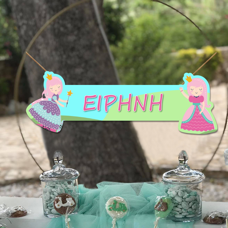 Ξύλινο κοπτικό Πριγκίπισσα, με το όνομά του παιδιού κατάλληλο για την διακόσμηση του μπουφέ, του candy bar ή του τραπεζιού