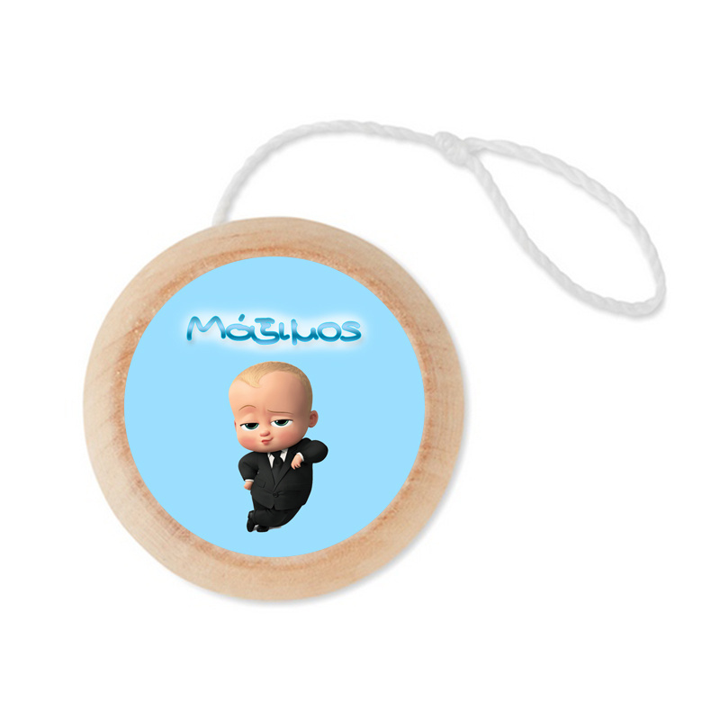Γιο-Γιο από Ξύλο Baby Boss με το όνομα του παιδιού με αυτοκόλλητο και στις δύο πλευρές κατάλληλο για δωράκι η μπομπονιέρα βάπτισης.