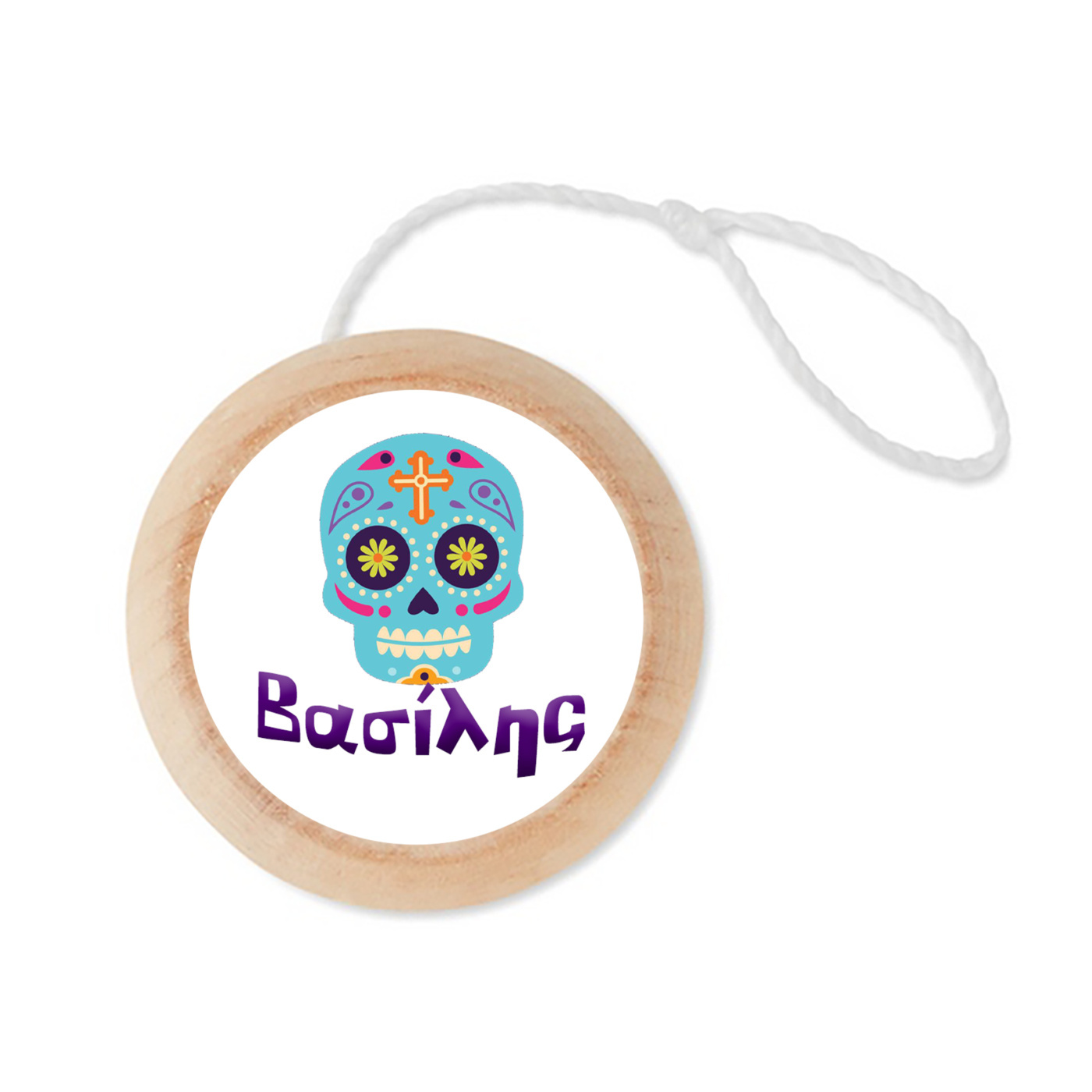 Γιο-Γιο από Ξύλο Halloween Νεκροκεφαλές με το όνομα του παιδιού με αυτοκόλλητο και στις δύο πλευρές κατάλληλο για δωράκι η μπομπονιέρα βάπτισης.