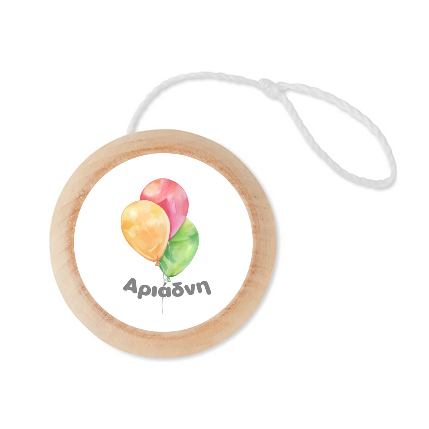 Γιο-Γιο από Ξύλο Happy Birthday Pastel με το όνομα του παιδιού με αυτοκόλλητο και στις δύο πλευρές κατάλληλο για δωράκι η μπομπονιέρα βάπτισης.