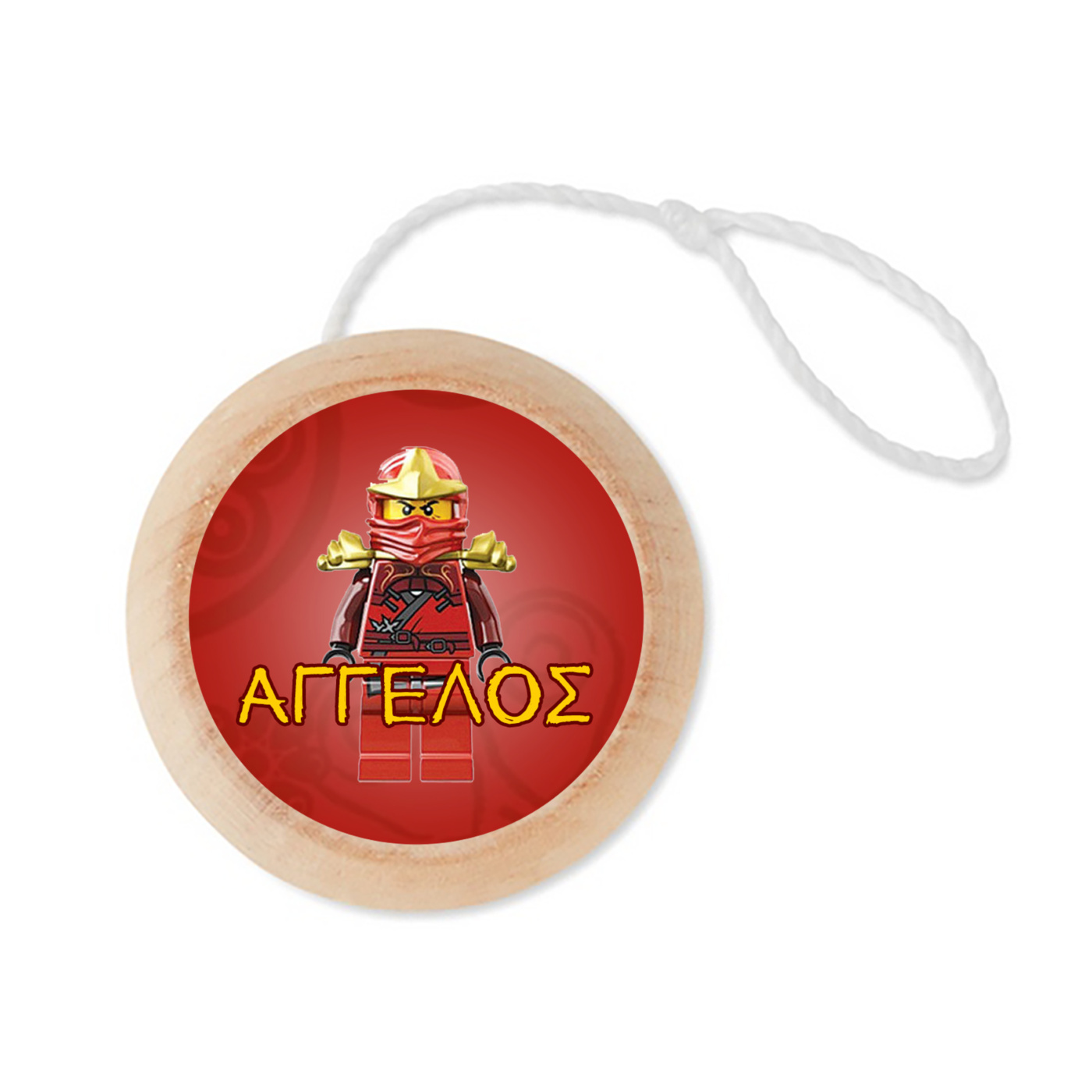 Γιο-Γιο από Ξύλο Ninjago με το όνομα του παιδιού με αυτοκόλλητο και στις δύο πλευρές κατάλληλο για δωράκι η μπομπονιέρα βάπτισης.