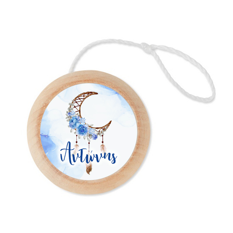 Γιο-Γιο από Ξύλο Ονειροπαγίδα Αγόρι με το όνομα του παιδιού με αυτοκόλλητο και στις δύο πλευρές κατάλληλο για δωράκι η μπομπονιέρα βάπτισης.