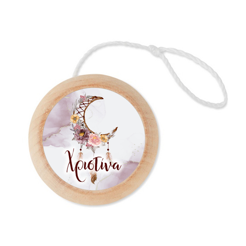 Γιο-Γιο από Ξύλο Ονειροπαγίδα Κορίτσι με το όνομα του παιδιού με αυτοκόλλητο και στις δύο πλευρές κατάλληλο για δωράκι η μπομπονιέρα βάπτισης.