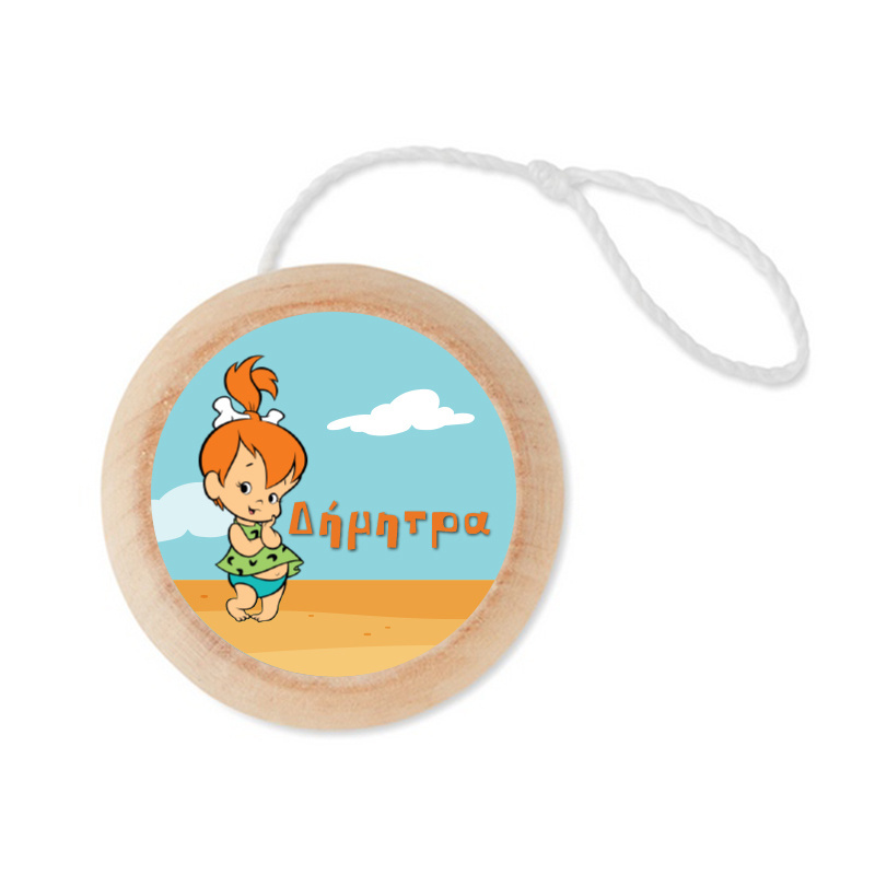 Γιο-Γιο από Ξύλο Σταλίτσα με το όνομα του παιδιού με αυτοκόλλητο και στις δύο πλευρές κατάλληλο για δωράκι η μπομπονιέρα βάπτισης.