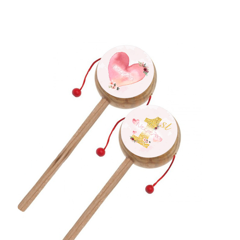 Ξύλινο natural τυμπανάκι με αυτοκόλλητο 1st Birthday girl και το όνομα του παιδιού σας.