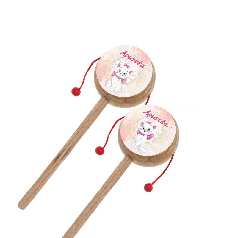 Ξύλινο natural τυμπανάκι με αυτοκόλλητο Αριστόγατες Μαρί και το όνομα του παιδιού σας.