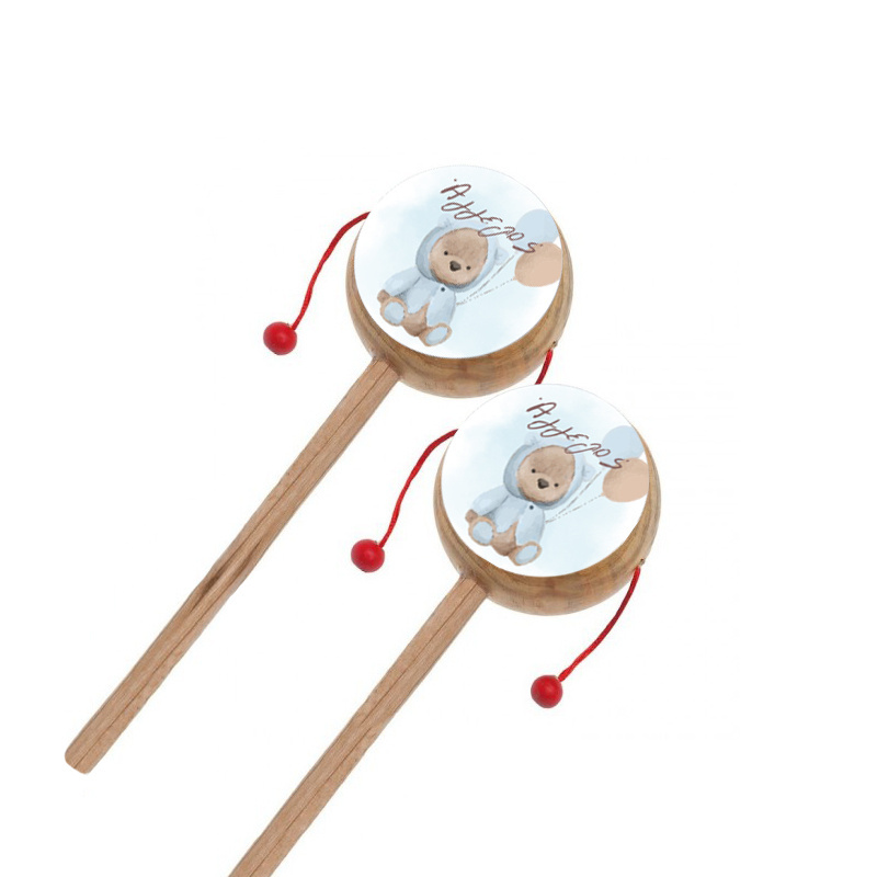 Ξύλινο natural τυμπανάκι με αυτοκόλλητο Αρκουδάκι για Αγόρι και το όνομα του παιδιού σας.