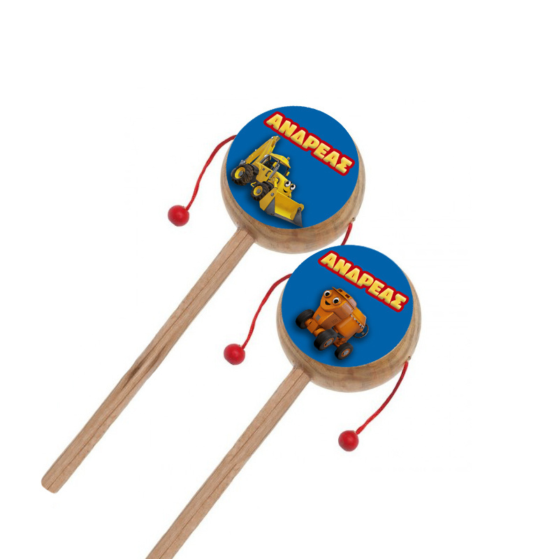 Ξύλινο natural τυμπανάκι με αυτοκόλλητο Μπομπ ο Μάστορας και το όνομα του παιδιού σας.