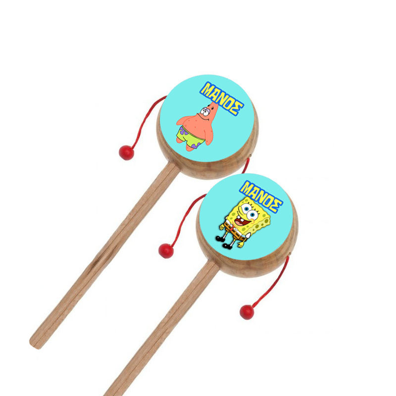 Ξύλινο natural τυμπανάκι με αυτοκόλλητο Μπομπ Σφουγγαράκης και το όνομα του παιδιού σας.
