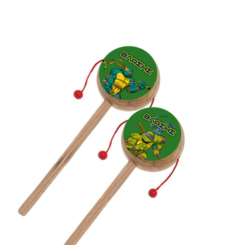 Ξύλινο natural τυμπανάκι με αυτοκόλλητο Χελωνονιντζάκια και το όνομα του παιδιού σας.