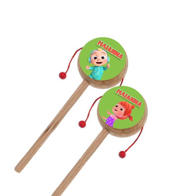 Ξύλινο natural τυμπανάκι με αυτοκόλλητο Cocomelon και το όνομα του παιδιού σας.