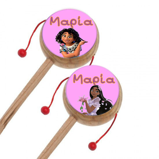 Ξύλινο natural τυμπανάκι με αυτοκόλλητο Encanto και το όνομα του παιδιού σας.