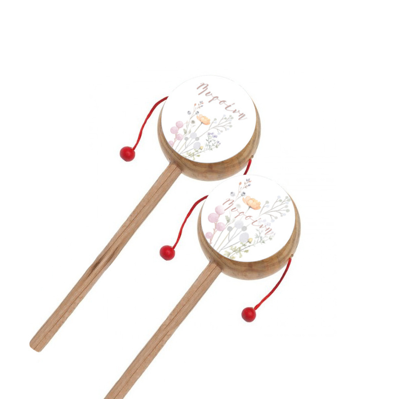 Ξύλινο natural τυμπανάκι με αυτοκόλλητο Floral Pastel και το όνομα του παιδιού σας.