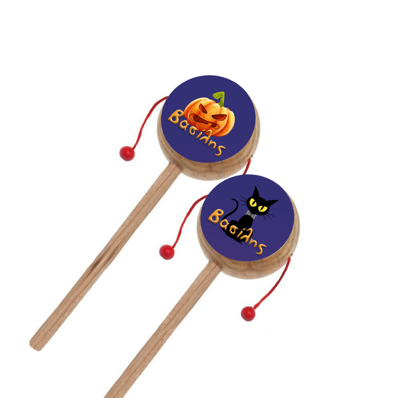 Ξύλινο natural τυμπανάκι με αυτοκόλλητο Halloween Κολοκύθες και το όνομα του παιδιού σας.