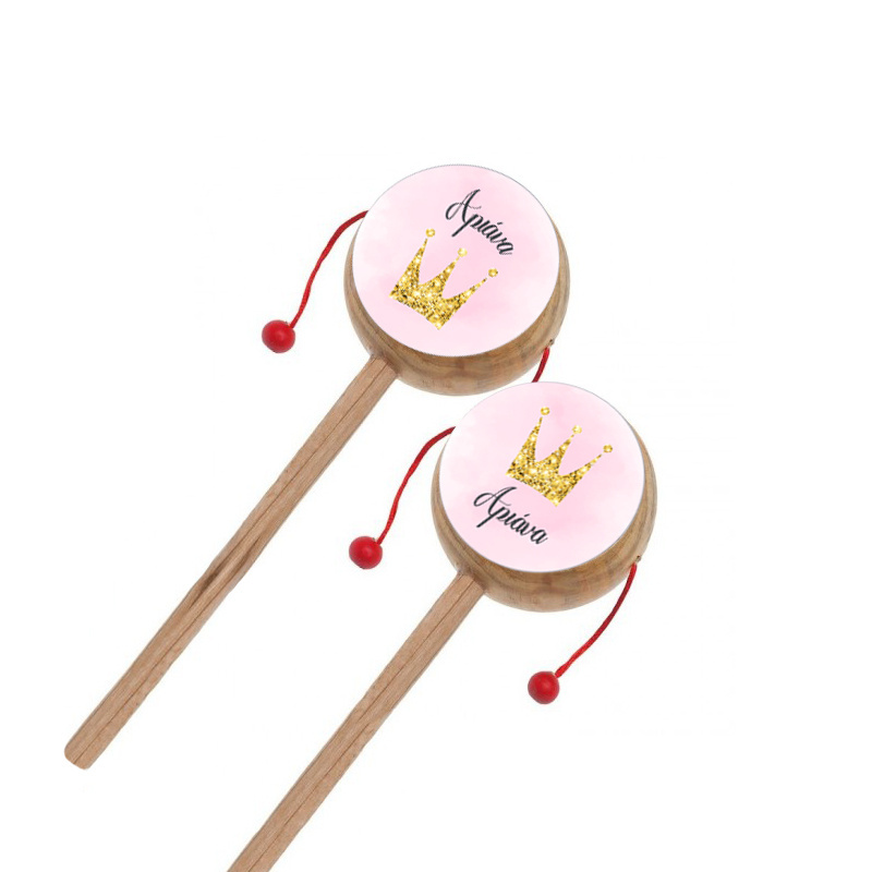 Ξύλινο natural τυμπανάκι με αυτοκόλλητο Κορώνα και το όνομα του παιδιού σας.