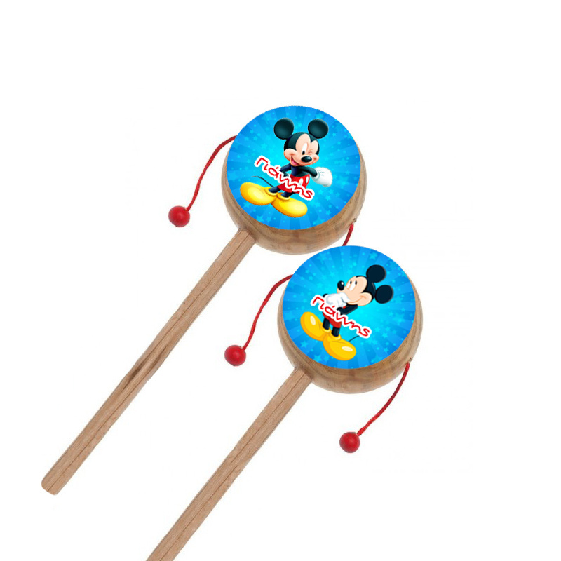 Ξύλινο natural τυμπανάκι με αυτοκόλλητο Mickey και το όνομα του παιδιού σας.
