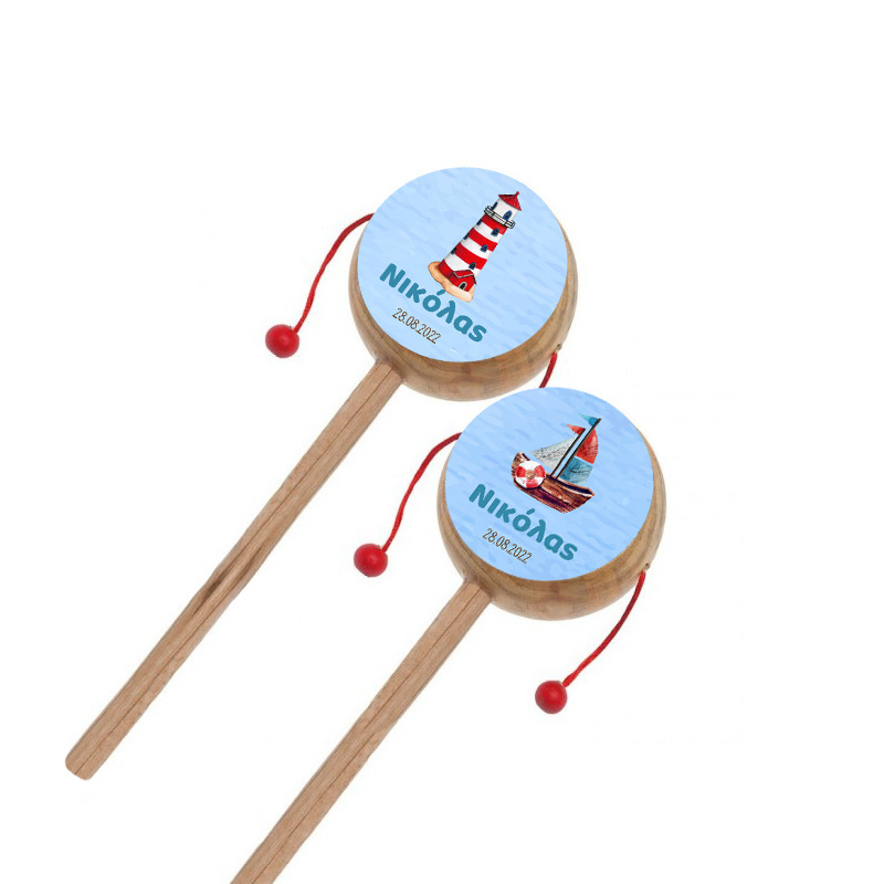 Ξύλινο natural τυμπανάκι με αυτοκόλλητο Ναυτικό και το όνομα του παιδιού σας.