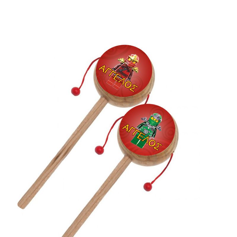 Ξύλινο natural τυμπανάκι με αυτοκόλλητο Ninjago και το όνομα του παιδιού σας.