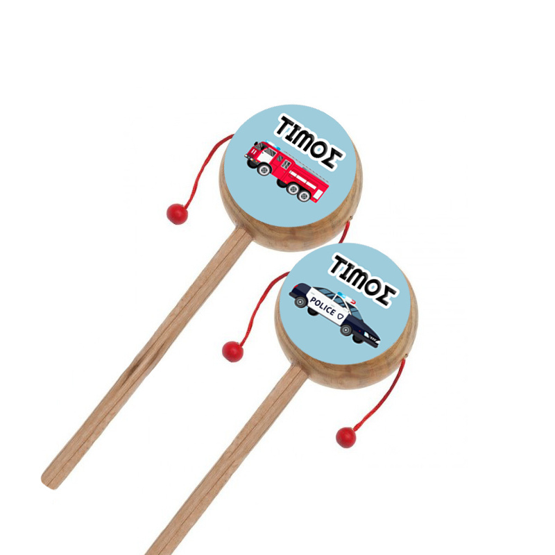 Ξύλινο natural τυμπανάκι με αυτοκόλλητο On The Road και το όνομα του παιδιού σας.
