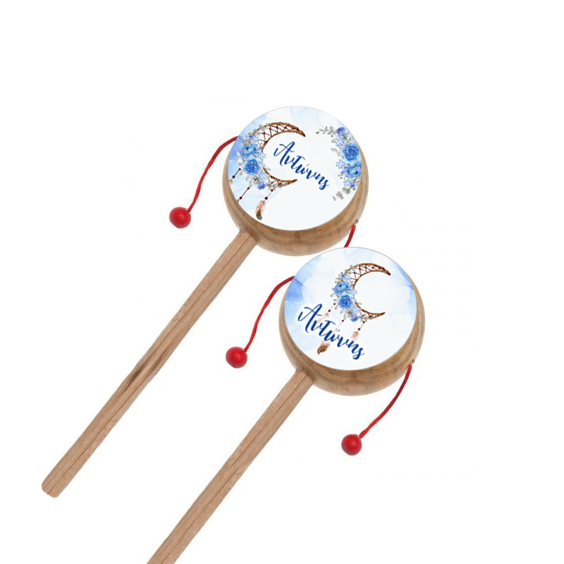 Ξύλινο natural τυμπανάκι με αυτοκόλλητο Ονειροπαγίδα Αγόρι και το όνομα του παιδιού σας.