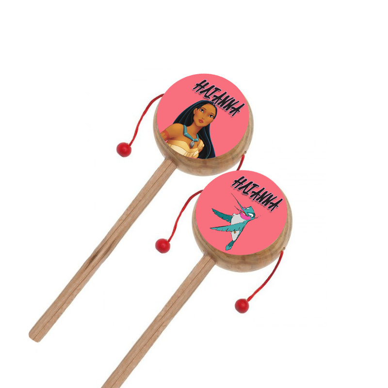 Ξύλινο natural τυμπανάκι με αυτοκόλλητο Pocahontas και το όνομα του παιδιού σας.