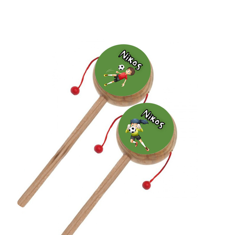 Ξύλινο natural τυμπανάκι με αυτοκόλλητο Ποδόσφαιρο και το όνομα του παιδιού σας.