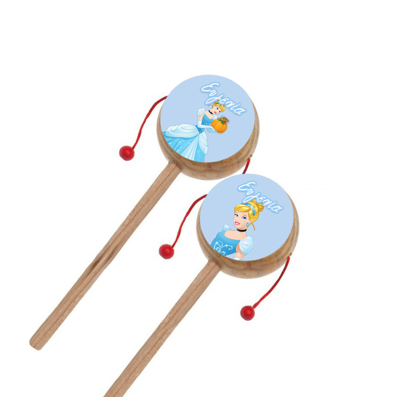 Ξύλινο natural τυμπανάκι με αυτοκόλλητο Σταχτοπούτα και το όνομα του παιδιού σας.