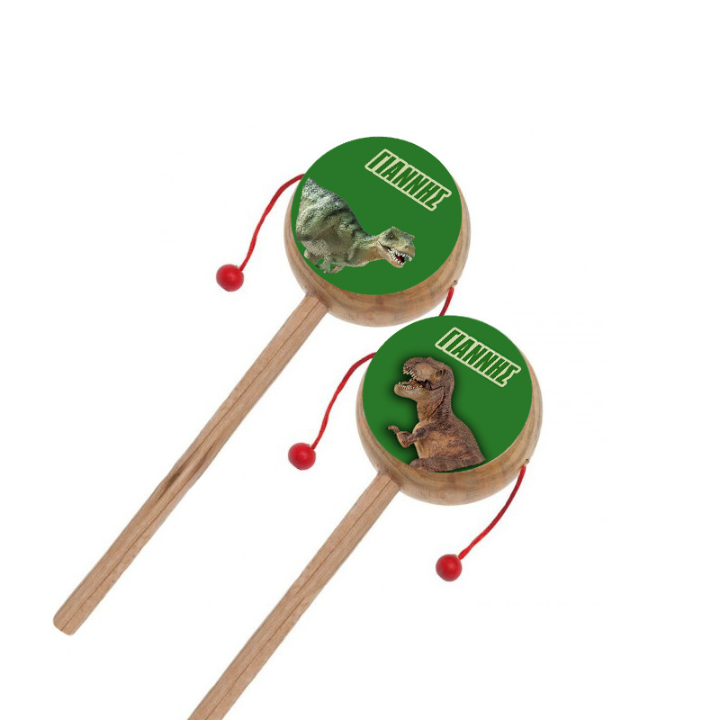 Ξύλινο natural τυμπανάκι με αυτοκόλλητο T-Rex και το όνομα του παιδιού σας.