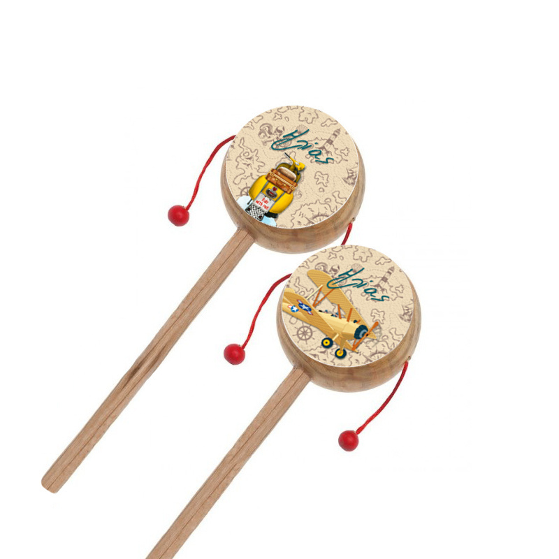 Ξύλινο natural τυμπανάκι με αυτοκόλλητο Ταξίδια και το όνομα του παιδιού σας.